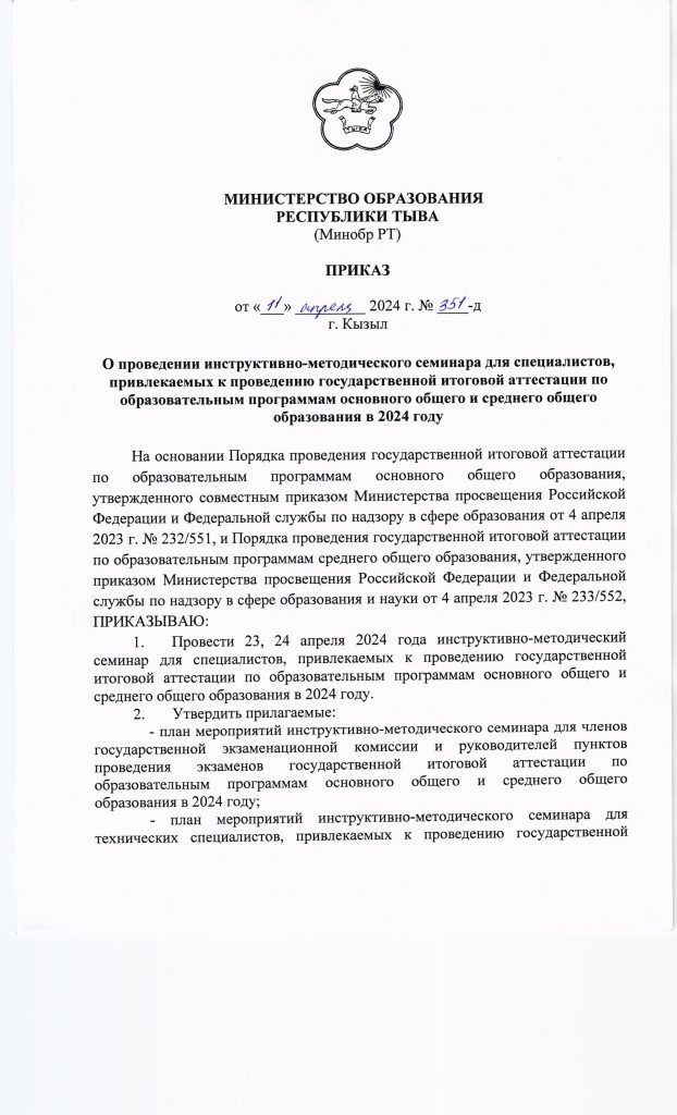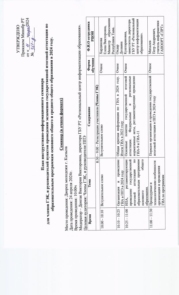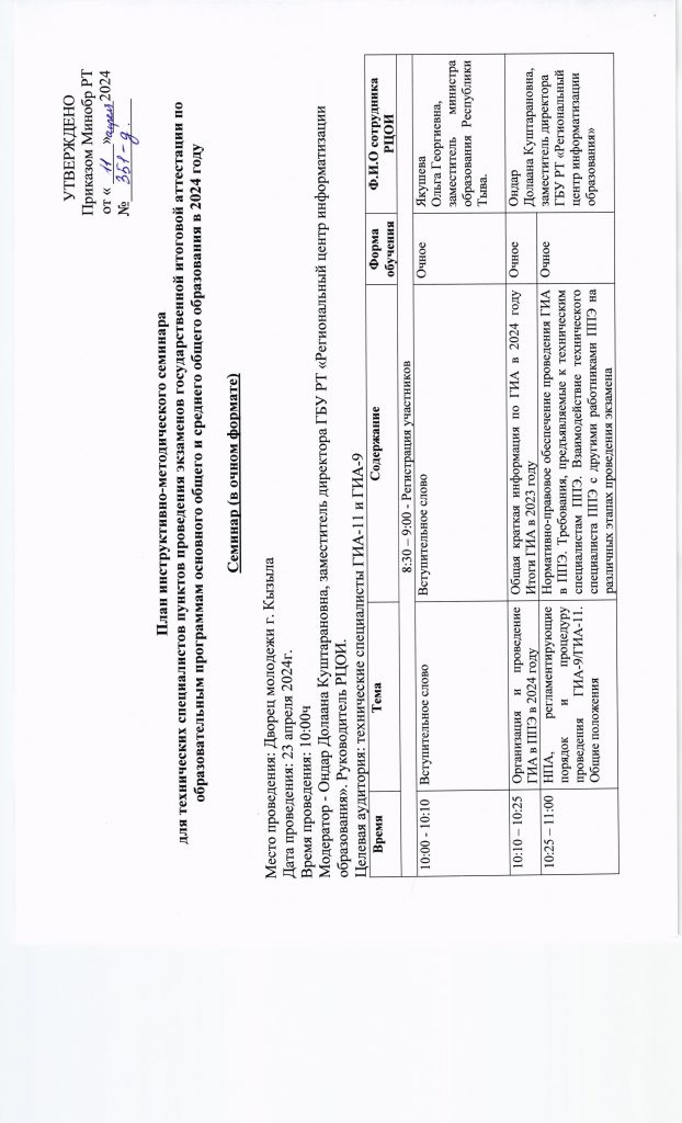 ГИА О проведении инструктивно-методического семинара для специалистов, привлекаемых к проведению ГИА по образовательным программам основного общего и среднего общего образования в 2024 году 15.04.2024 /