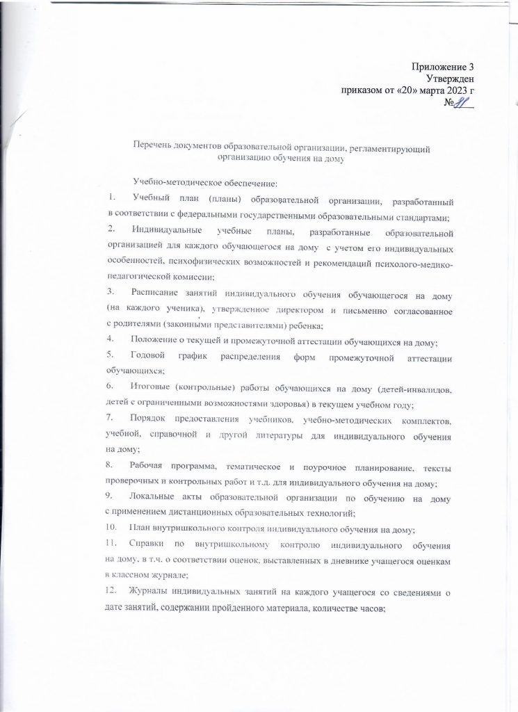 Перечень документов ОУ, регламентирующий обучение на дому.