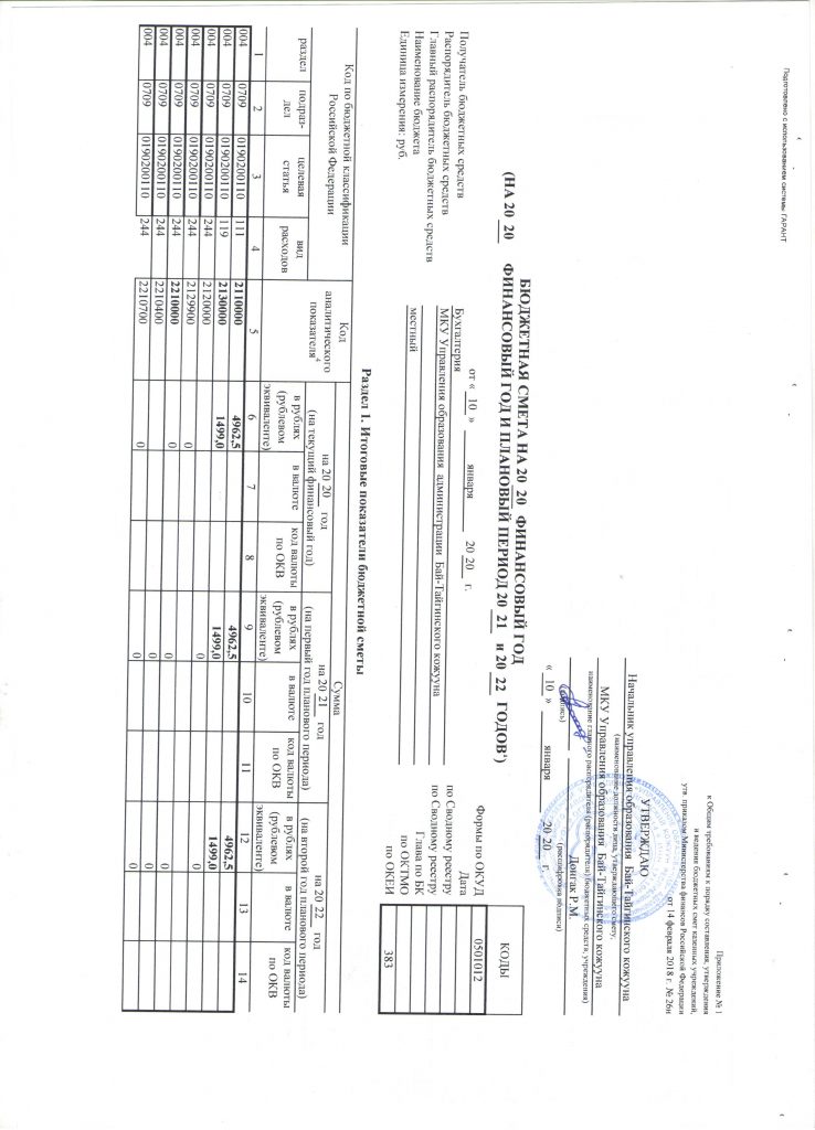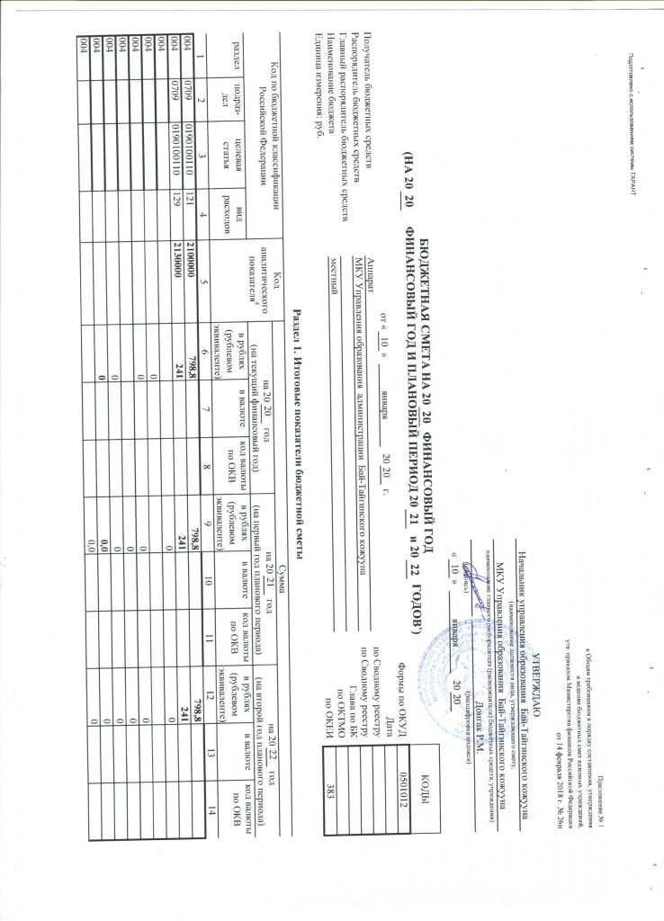 Финансово-хозяйственная деятельность Информация об исполнении бюджета Образование Отчет-о-бюджетных-обязательствахСкачать Отчет-о-движении-финансовых-средствСкачать Отчет-о-финансовых-результатах-деятельностиСкачать Отчет-по-исполнении-бюджетаСкачать Пояснительная-записка-бюджетной-отчетностиСкачать Бюджетная смета на 2020 финансовый год и плановый период на 2021 и 2022 года смета-2020Скачать