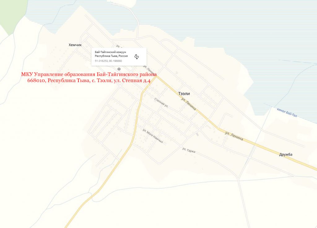 Адрес 668010, Республика Тыва, с. Тээли, ул. Степная д.4